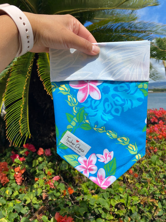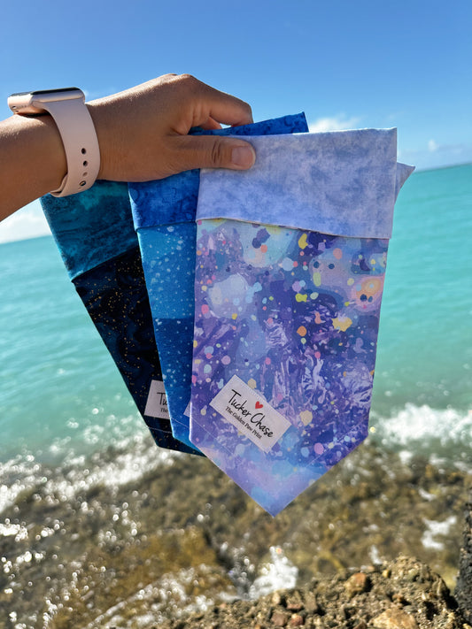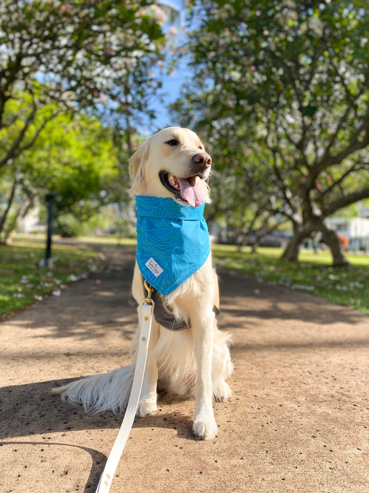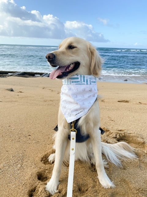 I am so excited to bring you Tucker's own namesake bandana. This reversible bandana option is the perfect representation of him. Plus, you can't go wrong with wearing either the white and blue arrows, the pale grey hearts, or like Tucker does folded over for a little bit of both!